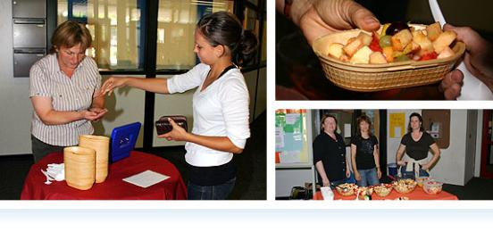 Am 22.01.2008 trafen sich auf Einladung des Elternbeirates 18 Eltern, die an gesunder Ernährung interessiert waren, darunter zwei Diätassistentinnen und eine Naturkostfachfrau. Ziel sollte es sein, die täglichen Malzeiten und damit auch die Pausen abwechslungsreicher und damit attraktiver zu gestalten. Aus den vielen Vorschlägen wurden dann verschiedene umgesetzt. Es gab Obstspieße, Joghurt zum Selbermischen, "vielseitige" Vollkornbrote und Obstsalat.