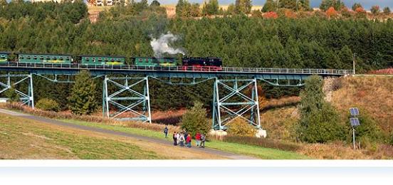 Am Tag der deutschen Einheit galt unser Gruß der Veranstaltung "20 Jahre Pressnitztalbahn". Auf dem 8 km langem erhaltenen Reststück der Pressnitztalbahn von Steinbach nach Jöhstadt konnte man bei volksfestartigem Andrang rund 50 Dampfzüge sehen. Stars waren die sechs blitzsauberen IV-K Drehgestellloks, Reihe 99.51, mit ihren Vierzylinderverbundtriebwerken. Sie erkraxelten mit ihren vollbesetzten Waggons munter die Steigungen vor Jöhstadt - wie vor 100 Jahren.
