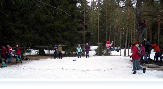 Für den Nachmittag waren schon die ersten Aufgaben angesagt; wir liefen z. B. zu einem großen „Spinnennetz“, das auf einer Waldlichtung aufgebaut war; wir mussten irgendwie versuchen, alle durch das Netz zu kommen, ohne die einzelnen „Fäden“ zu berühren. Da gab es viele Fehlversuche...