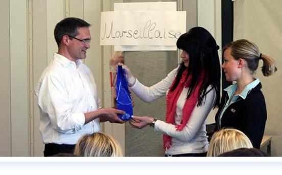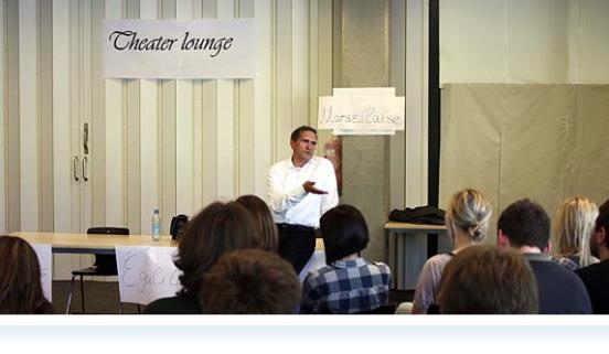 Anerkennung also für die Leistung der SchülerInnen, die vor diesem Hintergrund auch präzise Fragen zu stellen in der Lage waren. So gelang ein Einblick in die Theaterwelt, in die sehr konkrete Arbeit an kreativen Prozessen, die Schauspieler und Regisseur leisten, wenn sie eine Aufführung erarbeiten. Die Schauspieler sind mit Lust und mit ihren eigenen Ideen dabei, so dass die Aufführung am Ende das Ergebnis eines gemeinsamen Arbeitsprozesses darstellt.