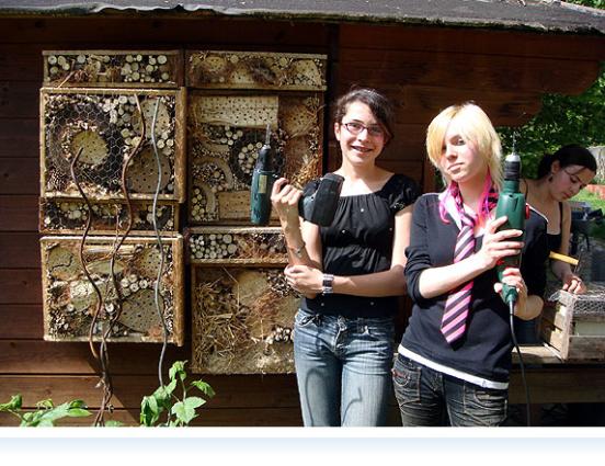 Bei einem spontanen Treffen zwischen dem letzten und diesem Schulgartenprojekttermin wurde einiges an Pflegearbeiten erledigt. So konnten wir bei strahlendem Sonnenschein in fast vollständiger Besetzung die Wiese mähen, das Saatgut in die Hochbeete ausbringen, überlegen wie viele Pflastersteine uns noch fehlen, fast alle Weidentriebe unseres Pavillons bändigen und den Rest unseres Insektenhotels montieren.