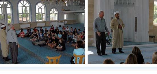 Nicht nur zum Beten trifft man sich in einer Moschee, auch für Gespräche, gemeinsame Freizeitgestaltung und sogar für Unterricht ist hier Raum. Im Gebetsraum demonstrierte uns der Imam die Gebetshaltungen und den Umgang mit dem Koran. Besonders erstaunte uns, dass er den ganzen Koran auswendig vorsingen konnte. Den Gebetsaufruf und eine Koransure unmittelbar zu hören war beeindruckend. Leider hatten wir die Zeit für Fragen etwas knapp bemessen, so dass wir bald wieder den Bus zurück nehmen mussten. Doch die Begegnung mit dieser gastfreundlichen Gemeinde wird uns in Erinnerung bleiben.