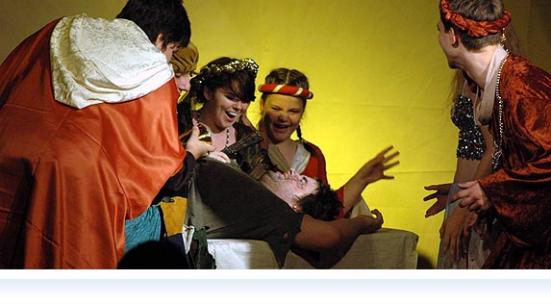 Die Premiere des diesjährigen Sommerstücks "Die Masque des ROTEN TODES" fand am Donnerstag, 23. Juli 2009, im Musiksaal statt. Die Theatergruppe des Apian-Gymnasiums unter Leitung von Frau Würflein erntete verdienten donnernden Applaus von einem sehr beeindruckten Publikum. Vor der faszinierenden Kulisse - erarbeitet und aufgebaut von der Bühnenbildgruppe mit ihrem Betreuer Herrn Huber - verfolgten die Zuschauer den Reigen der Todgeweihten in atemloser Spannung: