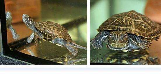 Die Tiere können derzeit in unserem Schauraum in der großen Pausenhalle beim Sonnenbaden beobachtet werden wenn man hinter das große Schau-Aquarium blickt. Eine direkte Ausstellung ist aufgrund der Schreckhaftigkeit der Tiere noch nicht möglich, sie wird aber folgen sobald die Schildkröten eingewöhnt sind.