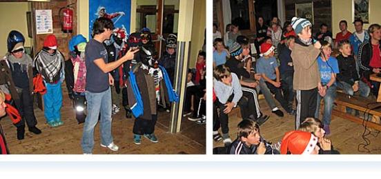 Das Tagesprogramm war also bei allen Gruppen gefüllt mit Aktivitäten und auch am Abend hieß es noch einmal "die Schulbank drücken" bei den Vorträgen zu den Pistenregeln, Erste Hilfe, Materialpflege für Ski- und Snowboard, zur Lawinenkunde und zur Natur- und Umweltkunde, die das Sportseminar vorbereitet hatte. Zum Glück blieb danach noch immer genügend Freizeit zum Spielen, Ratschen und gelegentlichem Unsinntreiben.