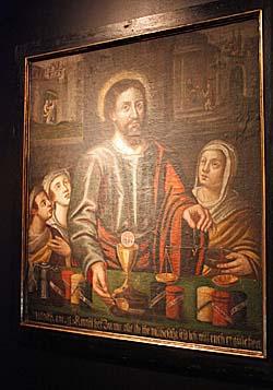 Besonders fasziniert waren die Schülerinnen und Schüler von der Tatsache, dass dieser Jesus auf dem Gemälde nicht nur in Krügen Wasser, Wein und Milch als Grundnahrungsmittel anbietet. Darüber hinaus bietet er in Salbendöschen für ein gelingendes Leben auch Tugenden wie Geduld, Beständigkeit und Vergebung an.