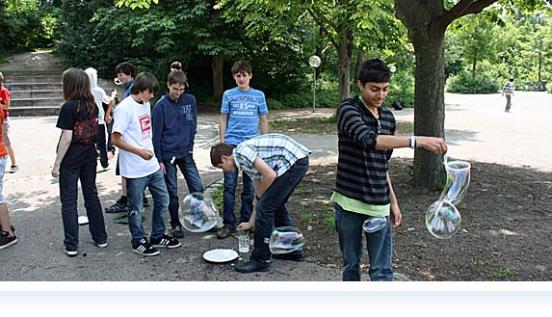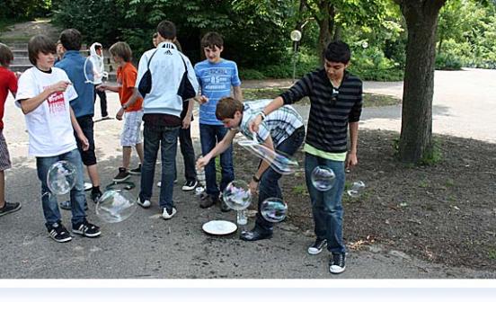 Im Rahmen des Chemie-Unterrichts haben die Schüler der 8b unter Anleitung von Herrn StRef Dr. Göttler ein Rezept zur Herstellung von Riesen-Seifenblasen getestet. Dabei wurden die Seifen-Lauge und die Puste-Ringe selbst hergestellt. Anschließend erfolgte im Freien ein Wettkampf um die größte Seifenblase, der den Schülern sichtlich viel Spass bereitet hat.