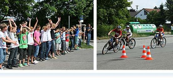 Um 1000 Uhr nahmen anschließend die „kleinen“ Einzelstarter der WK III (`97 und jünger) zuerst das Wasser ins Visier (100 m), bevor sie angefeuert von vielen Klassenkameraden die 3,8 Km lange Radstrecke zu bewältigen hatten. Aufgrund der vielen kräftezehrenden Antritte auf dem Rad nach den Wendepunkten, kamen einige ziemlich atemlos in der Wechselzone an und warfen ihr Rad einfach mal in der Zone auf den Boden, so frei nach dem Motto: Irgendwer stellt es ja schon wieder auf!