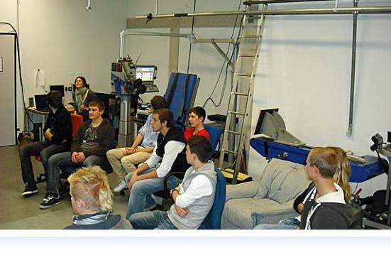 Nach der Mahlzeit wurden wir vor einem anderen Gebäude von Frau Julia Zandt, die gerade ihre Doktorarbeit am Lehrstuhl für Biomechanik schreibt, empfangen. Sie hat uns dann alle Labore der verschiedenen Bereiche gezeigt. Da sie gerade eine Studie zum Thema Prävention bei Überkopf-Schlagwurfbewegungen mit Außenrotationsbewegungen fertig gestellt und schon teilweise veröffentlicht hat, haben wir darüber sehr genaue Informationen bekommen.