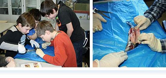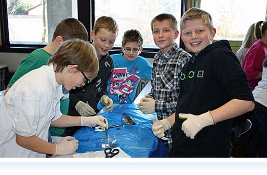 Am Freitag, den 16.3.12 sezierte die Klasse 6f, wie man hier schön sehen kann, Fische. Am Anfang ging der größte Teil der Klasse etwas schüchtern vor, doch dann hatte sie richtig Spaß daran und hat auch sehr viel gelernt. Es wurde alles unter die Lupe genommen, von der Kieme bis zum Herz. In einer Diskussion nach dem Sezieren der Fische, stellte sich heraus, dass fast die ganze Klasse es schön und effektiv fand, dass sie einen Fisch sezieren durfte. Trotzdem hatten viele Schüler die Meinung, dass das nicht alle Tage passieren dürfte.
