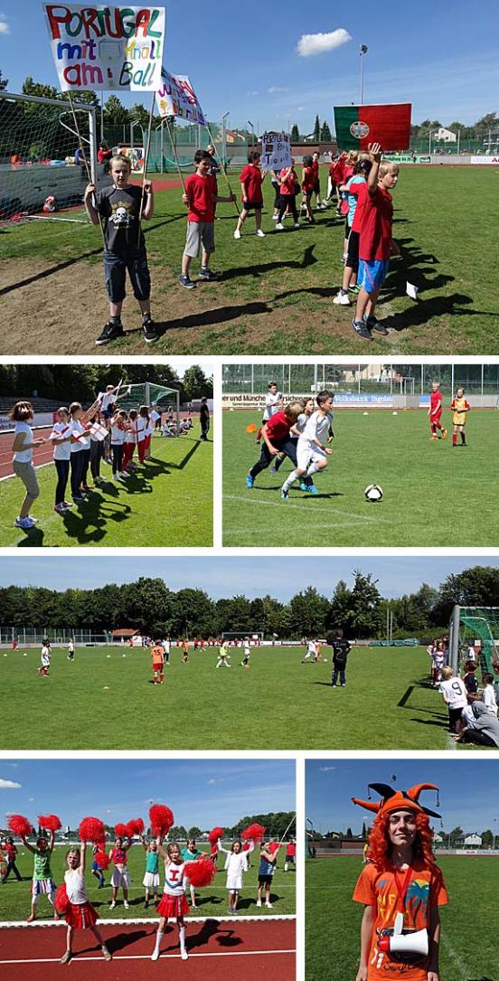 Die Fußball Europameisterschaft ist gerade zu Ende gegangen, da spielte sich auf dem Sportplatz des Schulsportzentrums die nächste Fußballgroßveranstaltung ab - die Apian EM 2012 der 5. Klassen. Auch hier spielten die Klassen im Modus "Jeder gegen Jeden" in einer Vorrunde zunächst die Platzierungen aus, ehe dann in zwei Halbfinals (1. gegen 4. und 2. gegen 3.) die Endspielteilnehmer ausgespielt wurden.