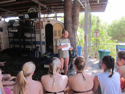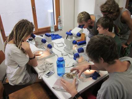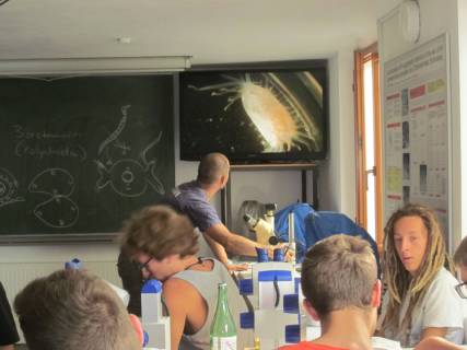 Am Vormittag eines Kurstages erfolgte jeweils ein interessanter und informativer Vortrag zu einem Themengebiet des Ökosystems Mittelmeer durch unseren Betreuer Matthias „Matze“ Schneider, einem wissenschaftlichen Mitarbeiter des HYDRA-Instituts. Anschließend wurden lebende Meeresorganismen unter den Binokularen betrachtet und bestimmt. Nach einer Mittagspause erfolgte dann die direkte Erkundung des Lebensraums Mittelmeer im Rahmen eines Schnorchelgangs, der von vier Mitarbeitern des Instituts geleitet wurde.