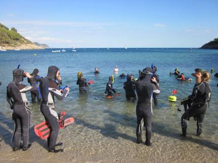 Auch heuer erkundeten wieder 25 Schülerinnen und Schüler des Apian-Gymnasiums zusammen mit ihren Lehrkräften Michaela Fleischmann und Markus Zeller die Geheimnisse der Meeresbiologie auf der Mittelmeerinsel Elba. Dazu fuhren sie zum HYDRA-Institut für Meereswissenschaften (http://www.hydra-institute.com/de/ifm/index.php), dessen Station in der malerischen Bucht von Fetovaia im Südwesten der Insel liegt.