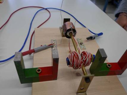 Ein Elektromotor ist der Grundbaustein vieler Elektrogeräte. Wie so ein Gerät funktioniert konnten die Klassen 9d und 9c anhand einer praktischen Übung erfahren. Sie durften während der Physik-Übungsstunden selbst einen bauen. Durch den Nachbau mit Hilfe von Anleitungen, meist aus dem Internet, konnten die Schüler ihre kreative Seite zum Vorschein bringen. Sie bauten mit Gegenständen aus dem Alltag oder Baumarkt Rotoren, Kommutatoren oder auch Elektromagneten.