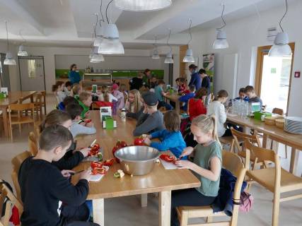 Da es vormittags schneite, verbrachten wir die Zeit mit einem Kooperationsspiel im Gemeinschaftsraum. Am Nachmittag stand das Thema Wald und die Waldbewohner noch einmal im Mittelpunkt. Am Abend gab es Burger und die Gewinner des ordentlichsten Zimmers wurden bekannt gegeben.