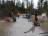 Die erste und dritte Gruppe führten die zweite und vierte Gruppe den Weg entlang, das war echt spannend. Auf dem Rückweg wurde getauscht. Es wurde auf dem Weg gesunden und gequatscht, aber manchmal musste man ernst bleiben. Unsere Mittagspause konnten wir am Malerwinkel machen. Es wurde viel mit Stöcken und Klebeband gebastelt und auch ein bisschen gekämpft. Aber alles ging gut.