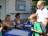 Also dauert der Abbau wieder gut eineinhalb Stunden. Gottseidank ist mir ein Kollege geblieben, der tapfer die Matten (fast) alleine erst zum Trocknen an der Außenwand der Sporthalle aufreiht (trotz des ausgeklügelten Aufbaus sind doch ein paar etwas feucht geworden) und nach dem Abtrocknen auf den Mattenwagen wuchtet. Bis dann alles wieder an seinem Platz ist und die roten Teppiche zum Trocknen in die Sonne ausgelegt sind, vergeht doch einige Zeit. Das Gute an Hitze - die Matten und Teppiche trocknen schnell. Das Schlechte: Das Wasser läuft uns verstärkt am Körper runter (mir zumindest) und je mehr ich trinke, desto stärker! Logisch! Der Kühlungs-effekt ist aber fast Null. Ein Gutes an der Schwimmhalle - ich bin fast nur im Schatten - da habe es meine Kollegen im Außenbereich schlechter!